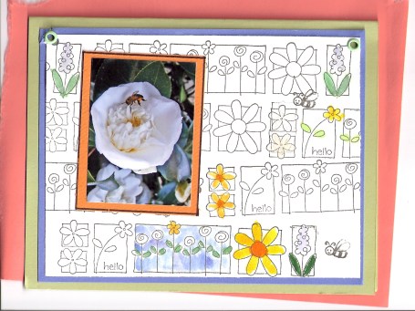 This card from Sweet of You, a stampin up set with a cute window and a cute thought. The flowerbox was done twice and the 2nd one cut out and raised on top.