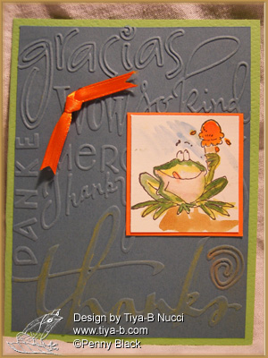 The stamp is penny black, the background is cuttlebug the color is twinklingh2o’s, how boring but really i seem to these tools alot.