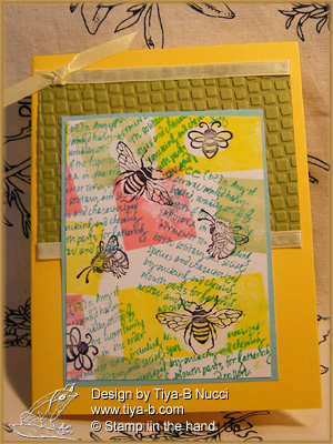 This is just a lot of bees and a cuttlebug and ribbon background. I like word stamps and stamp in the hand makes nice words to match several of their stamp design. this includes their bee and a few others.