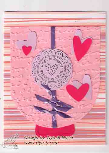 More pink and purple and hearts since its almost Valentines day there’s a cuttlebug background, Stampin’ up sentiment and heart punches, and a spellbinder nesties cut.