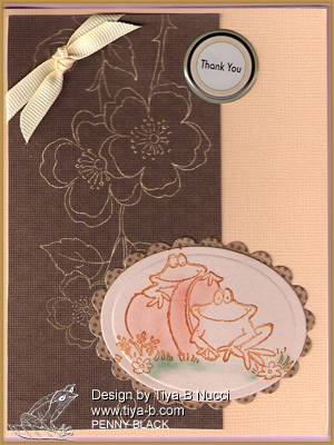 The Penny Black challenge 97 is to create a card in monochrome brown.. Since I have so many stacks of paper I just had to go through and choose the browns. Isn’t the one with the flowers, perfect? I like all my stamps but the frogs are best!