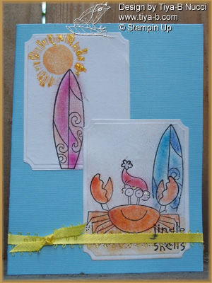 so i wanted to use this the crab for Stampin ups Crab and company so here he is in Redondo Beach beach with his Santa hat. the sketch is from Tuesday morning sketches#10. and the frames are spellbinders.