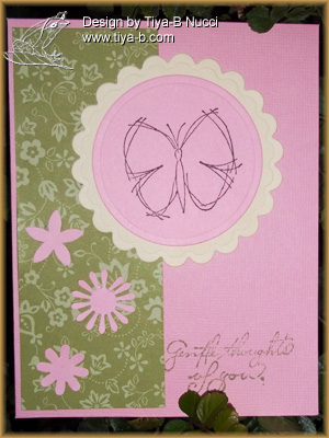 its penny black Saturday and i need more pb stamps… this butterfly is a great stamp so I’ve use3d it too much. the challenge wast 1 circle, two papers,three flowers… think I’m close. the gentle thoughts is Stampin up and the circles cut with spellbinders.