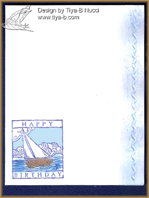 Sometimes I don’t ‘get’ the one layer wonders, simple yes, but enough??? I’m usually not sure. Today’s challenge was to do a scene. Here’s a Stampin’ up hb boat scene that was colored with chalks and a cuttlebug squiggle on the end of the card.