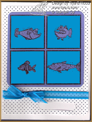 Its Mojo Monday and here are my Stampin’ up fishes… and background dots and a ribbon.