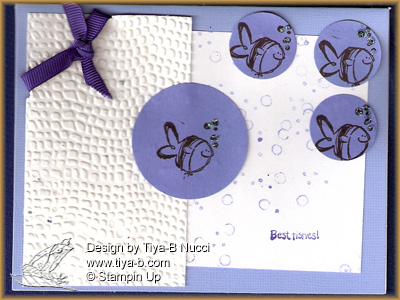 The template is from Everybody art challenge the set is Stampinup very punny. one background is cuttlebuged bubbles and the oither background set is cuttlebug circles,guess it’s stille summer…. more fishes..