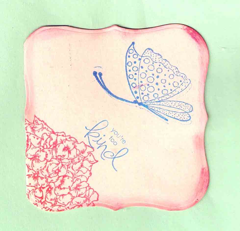 Although the theme for penny black this morning was not a square, this card is sort of square but i used a spellbinder nestability to cut so I guess it fits the category. The butterfly is Penny black the flowers and sentiment are stampin up and used a sponge to frame the edges. Can’t decide if its too plain.