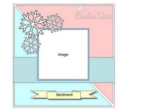 I’ve loved this stamp for years… so here’s snowy and punched snowflakes… and yes it’s easy for me in sunny(and or rainy) Southern California.. the stamp is Penny Black cut and embossed with spellbinder label nestie, the added color is from Marvy pens and the scarf and little hat birds are pattern pieced; Then a background paper and a couple of snow flakes were added. I’ve included the sketch below.