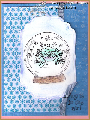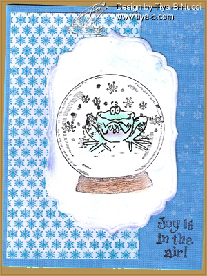 The frog is Penny black, the snowglobe ,flakes , and ‘joy’ are Stampin up. The background paper is from a stack.. i like snow cards better than snow.
