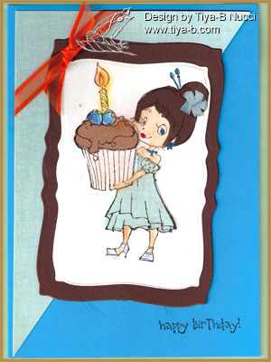Its my sisters birthday and she really liked Cupcake Ruby from sparkling creations , so here’s Ruby again in blue with a white cupcake and chocolate icing topped with blueberries.