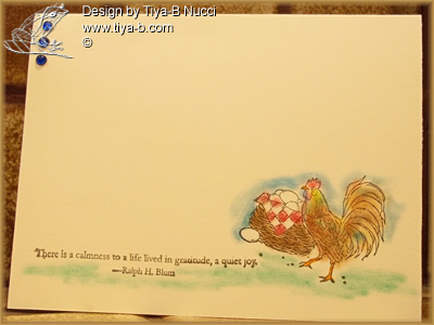 Love this Stampin up set makes me feel like I’m with my sister (she has chickens you know)…I chalked for color, the One Layer Wonder challenge is eggs . one layer, eggs and the tiny blue bubbles in the corner. The Less is More challenge is masculine and whats more masculine that a strutting rooster?