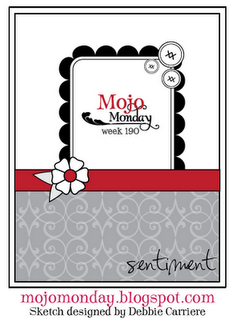 As usual it’s Monday morning and I’m running late… this is a what’s left on m craft table . the stamp is from Hampton arts and the flowers are punched. the inspiration is from cupcake inspiration and Mojo Monday provided the sketch. I had a great Mothers day with mom… hope you had a great one too.
