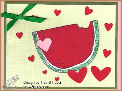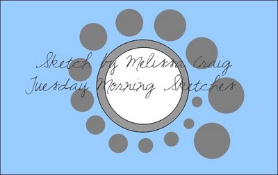 Most of my challenges are on Tuesday, here’s the first. This card is for Tuesday Morning Sketches(below) and My Time to Craft’s- here comes summer… I love watermelons so that is the summer theme today. I stamped the watermelon(Alias Smith and Rowe) twice once on white and then red, cut out the red and white, chalked the green and added a pink heart . then punched the red hearts… hearts and watermelons how perfect for summer!