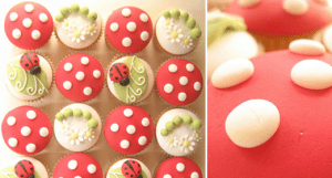 cute card, can you decorate cakes like the pictures? good background paper, kinda “lady bugish”