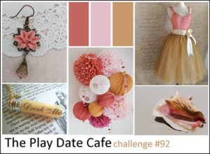 This is for 4 challenges Mojo Monday 201, Cupcake Inspirations , Marks finest papers Challenge (use 3 hearts) and the Playdate Cafe. These stamps are from Stampin up ‘Just my style’ set. I embossed the images in gold and then cut with spellbinder nesties. I added ribbon and 2 small buttons for the mojo sketch. Play date cafe has colors coral pink and gold. the Mojo sketch, cupcake inspiration, and play date sketch are shown below.