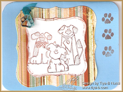 The design is from Tuesday morning sketches(below) and the theme of My Time to Craft was delightful dogs and these smARTworks dogs fit the theme. I stamped each dog then masked it, then stamped the next on a scrap, die cutcut the dogs and frame with spellbinders nesties. I added a dog charm and 3 cute paw prints.
