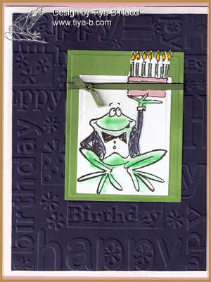 Tiya what a fun and fabulous Birthday card. That embossing folder is awesome. That toad is cute too! Thanks so much for playing along with us at Speedy the Cat’s Friends Challenge. It is a pleasure to visit to see you work.