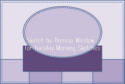 This is for several Tuesday challenges- first the sketch is from Tuesday Morning Sketches– see below…i did take several liberties…, the colors are from Everybody Art Challenge pink and brown , the My Time To Craft challenge was Musical Medely. and Top tip Tuesday‘s challenge is two or more ribbons, twine or fabric and finally Party time Tuesday has anything goes.. The stamp is labeled Postmodern design music collage, stamped then cut with spellbinder oval nesties, some scrap background paper and thee bows.