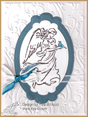 This angel is for two challenges Case Study and Play Date cafe. the stamp is Stampin up colored with chalk, the frames cut with spellbinder nesties and the background sizzix embossed.