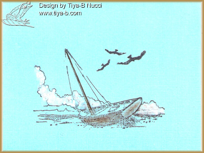 Today’s Less is more is aqua so i put this boat on aqua paper… the stamps(boat and birds) are from Local King Rubber Stamp.. the clouds and boat are chalked.