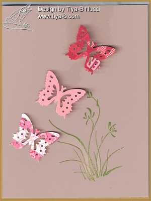 The Less is More challenge is die cut or punch… so here 3 butterflys that fit this and the Color throwdown crumbcake, poppyred and pink, the stamp and die are form Stampin’ up.