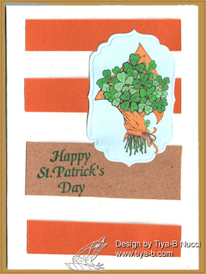 It’s the 14th and I’m still making shamrock cards. The stamp is from Waltzing mouse stamps the sketch is from Skipping Stone designs, and the colors from Color Throwdown blue, celery craft and rust, and since it has a Bit o’greem entering Simon says stamp and Cupcake Inspirations too!