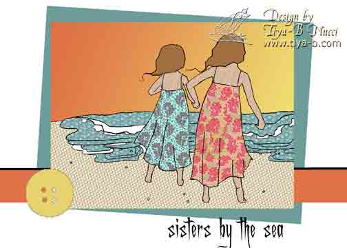 Two challenges this morning CASology -family and the Tuesday morning sketch. This digi is from A day for daisies and I bought it because the scene reminds me of the few times my sister and i were at the beach ,(altho in Southern California teenagers are at the beach a lot, most of the time we were with lot with lots of friends or family.) but at times would walk along the shore together. its paper-pieced in PS elements… I’ll make several cards with another sentiment.