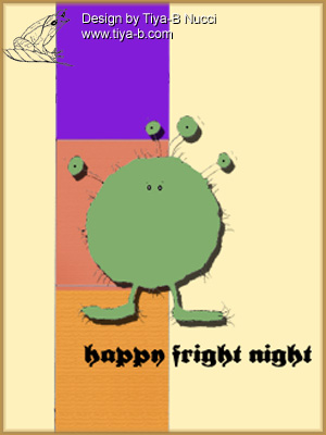 The Less is More challenge was a sketch and I combined it with the A Day for Daisies challenge Monster or Halloween colors, Crafts4Eternity – ghouls ghosts or goblins, and CAS-ology – wild. Yes this card was created in PS elements.