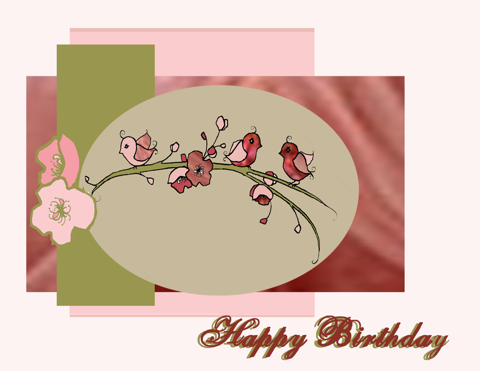 birdsonacherrybranchbdTwo cards this morning since it my moms birthday here’s mom’s  card, but since it would also make a great thank you card , i did one with a thanks  sentiment too.  these are for challenges  Mojo Monday and Color Throwdown using a A Day for Daisies image pieced and colored in PS elements.