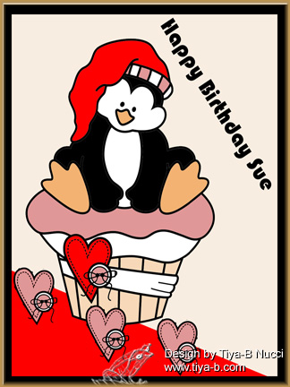 The challenge is for CAS(E) this Sketch #29 and my sister’s birthday… the digital stamp is from Whimsie Doodles. Although it’s almost summer, and penguins seem so winter.
