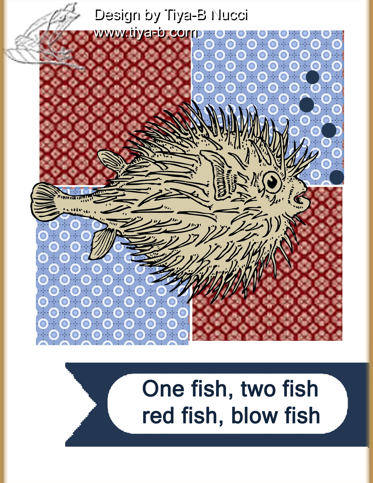 Three challenges CAS ology – fish, the Tuesday Morning Sketches sketch and my 2nd entry for Color throwdown, I like using red , white and blue! the puffer fish is from an online coloring book!