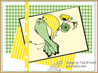 its Monday so here’s my paper pieced card…. for the Mojo Monday challenge/contest. It’s yellow and green cause I’ve had yellow and green buggies(parakeets) the digital stamp is from A Day for Daisies.