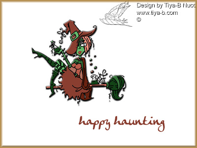 The theme for the Less is more is rust and dark green… here’s my Photo shop coloring of a Bugaboo witch….with and without a spider web!