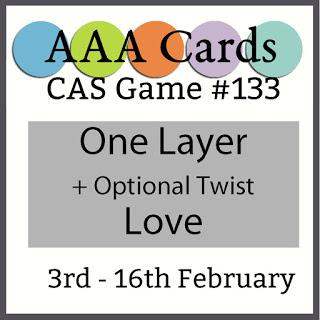 \The AAA challenge this fortnight is One layer +love . I used this digi ‘From the heart ‘ digital staMP and added some color and a sentiment.