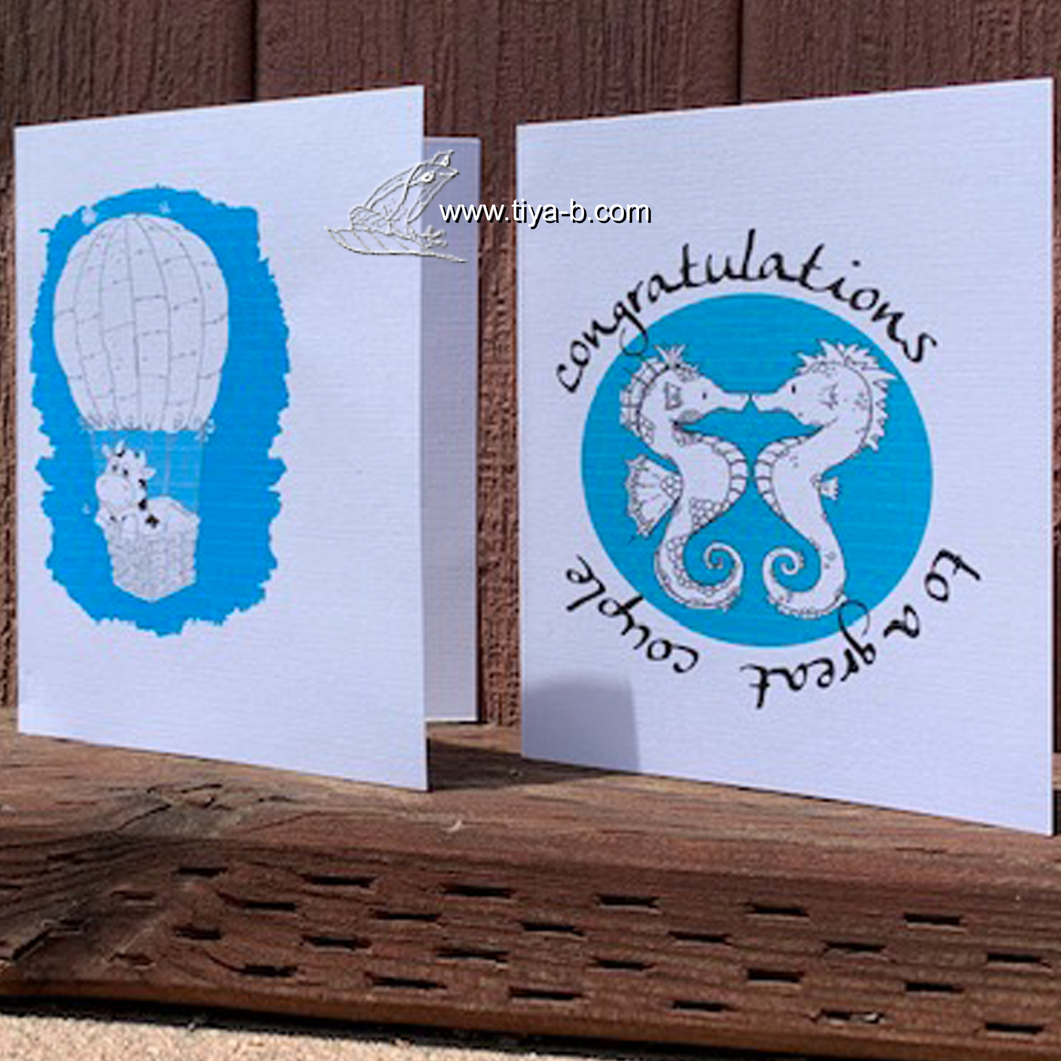 On this beautiful Mayday I’m showing two cards for the Casology cue turquoise. I used the color as an air background for a hot air balloon thank you. and a sea background for a seahorse anniversary card. The balloon is a stamp I just bought on Etsy because wanted a cute digi cow