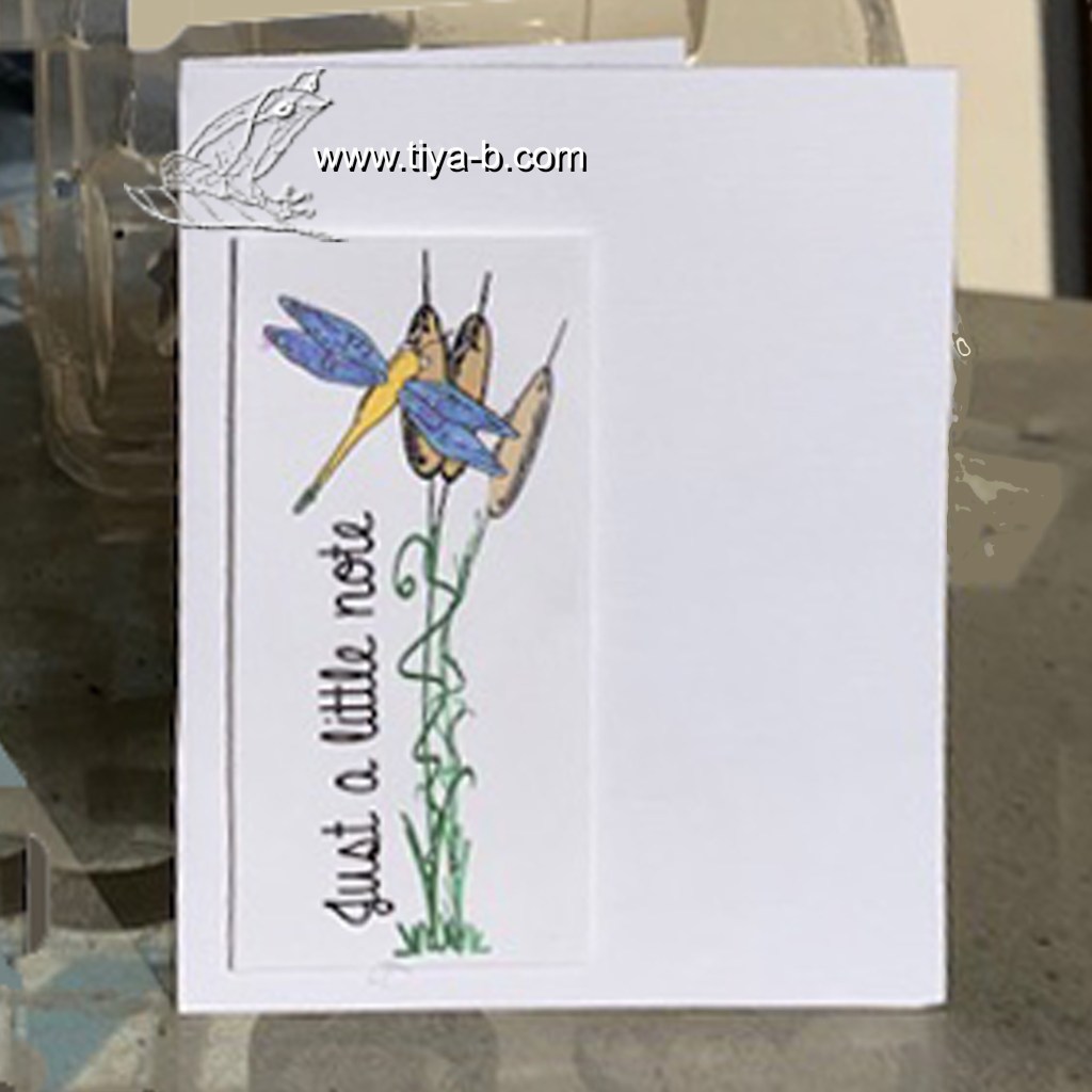 When i saw the casology challenge, I had to make a dragonfly card altho I don’t have a digi i like. These digital stamps are in my collection but dont really like either the dragonfly or cattails, promise my self i.,ll get a great dragonfly stamp if i find one. I’ve always loved watching dragonflies when i see them. They are so delicate and their wings sparkle in the sunlight. heres my entry in the CASOlogy dragonfly challenge.