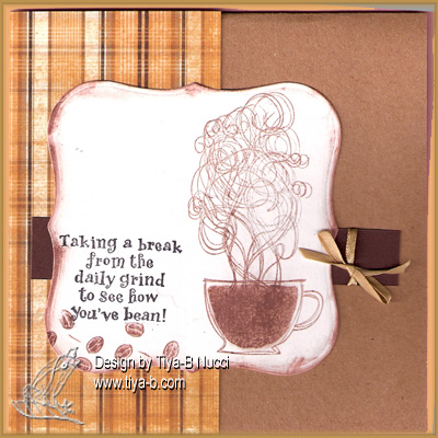 Party time tuesday was square cards and the theme of Crafts for eternity is caramels and cream…. the sentiment and cup and steam are form Stampin up sets, altho i spent time straighten up the brown background strip it looks crooked????