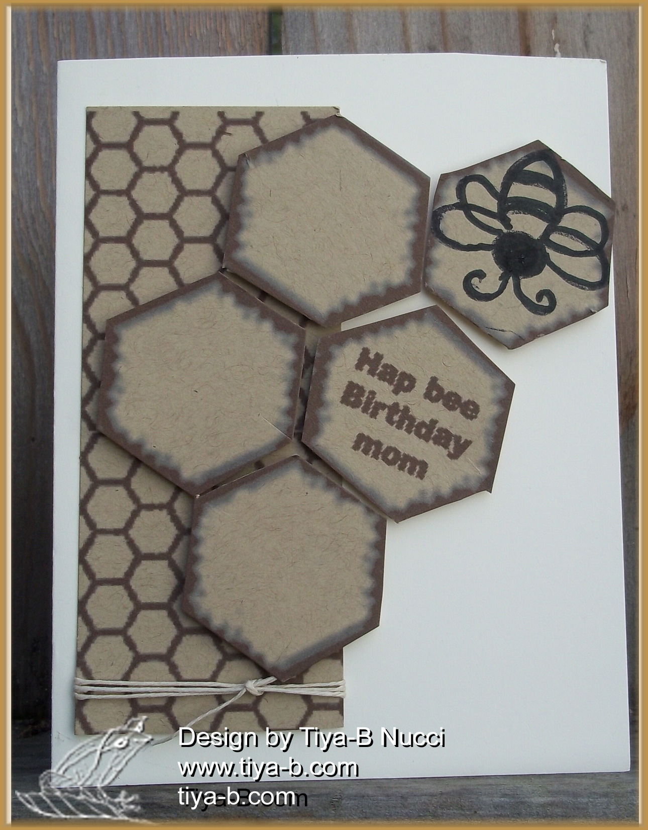 I blew it! I didn’t remember the only part of the Less is more 2nd birthday challenge so my first entry was Kraft & Kream (& red and green). This one is only Kraft and Kream. Since my moms birthday is tomorrow here’s another bee card for Bea. I added this to the Simple salutations challenge since it has my sentiment on the front.
