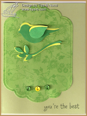 The Stampin’ bs challenge is border punch , and I hope this frame is a good border. The bird, and foliage punch is Stampin’ up and the background frame spellbinders.