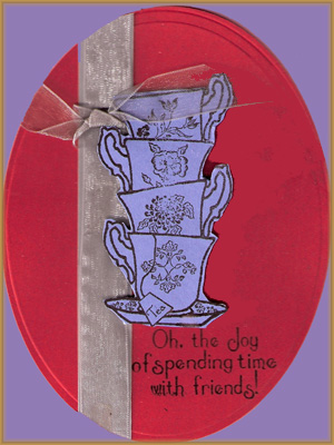 This is for three challenges Play Date Cafe’s color challenge red, slate blue, & gray , Skipping stones sketch ( see sketch below), and Stampin b’s -friendship theme its a 3 in one… The cups and sentiment are Marks finest papers clear stamps , the oval is cut with spellbinders and an added silver/gray ribbon added for the sketch completion.