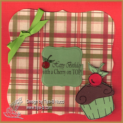 The Stampin b’s design team challenge this week was a square birthday card with paper piecing. I used background paper from a stack, scraps for the pieing, cut with my spellbinder dies and added a ribbon. the stamps are form marks finest papers. i think the cupcake should be blackforest- a chocolate cupcake with cream filling and a cherry on top… yum!