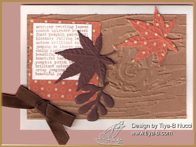 Finally a fall card… I’ve been seeing a lot lately so its my turn… this is for CASE study– see below, Stamping B’s use 2 or more spellbinder dies. the woould was done with a sizzix emboss envelope there are 3 spellbinder leaves and the words came from an autm stamp set fromScraptrends.