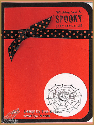 End of September, better start Halloween cards and that’s the theme of Stampin’ b’s design the sketch is from Case study , the stamp set for the sentiment and spider is penny black.