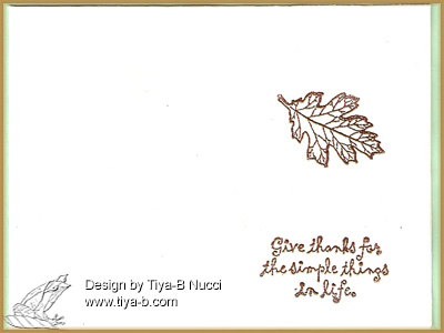 Today the one layer wonder challenge was heavy metals… so i used my copper embossing to highlight the leaf and sentiment( from Stampin up). It beginning to look a lot like fall.