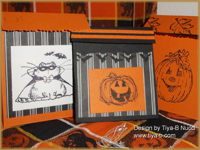 Trick or Treat, smell my feet. Give me something good to eat! is the Tuesday Morning sketches challenge this week.. and treats for Halloween was the challenge at the creative cottage.. and although I’m quick making cards other crafts seem to make me stop and think… i know its two days late!!! i got this treat bag from split coast stampers and here are three of them. the cat is penny black and the pumpkins are Stampin up. now i just have to make lots more and fill them.