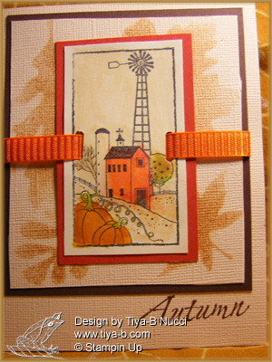 The scene set is called Country Pleasures, the word setr is calledSeason by season, both are from Stampin’ up.