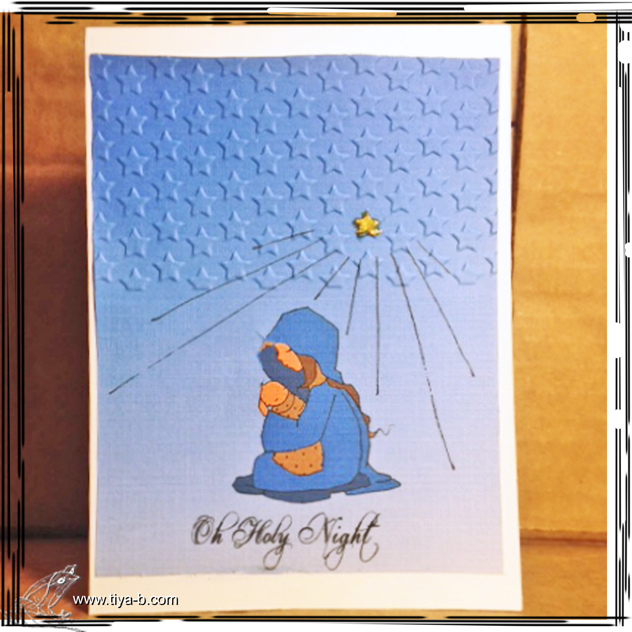 Today I’m entering AAA cards Blue Blue Blue Christmas, the image is an A Day for Daisies and i used a lot of blue in coloring it, i also used a Darcie star embossing folder to get a bunch of stars coloring the brightest stars with stickles to get it sparklie. Here’s a card without the embossed stars, although simple is nice i like embossed stars.