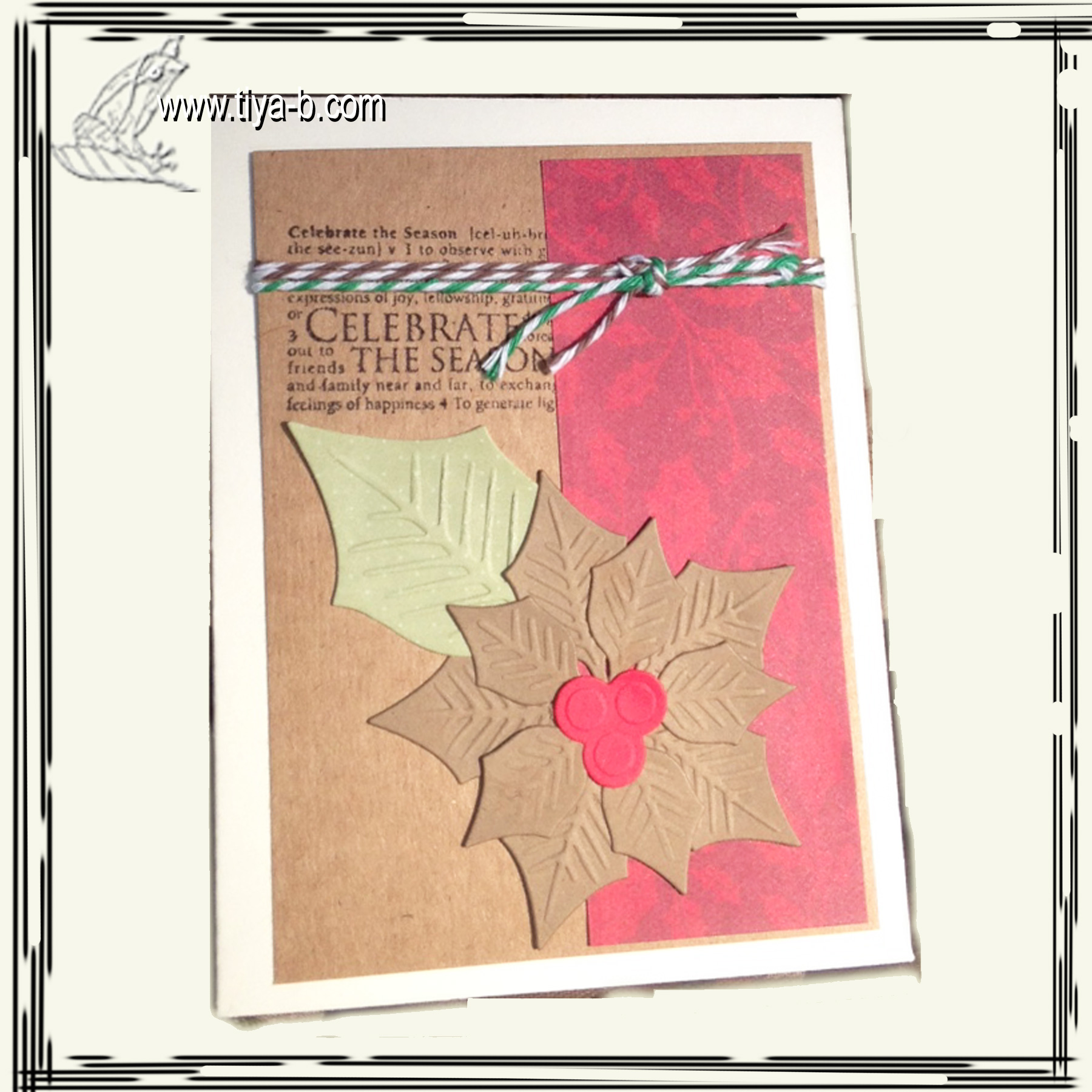 it’s monday and I’m working on Christmas cards… here’s a spellbinder poinsettia cut/embossed on kraft paper with a designer paper background and a stamped sentiment.yea Mojo Monday .