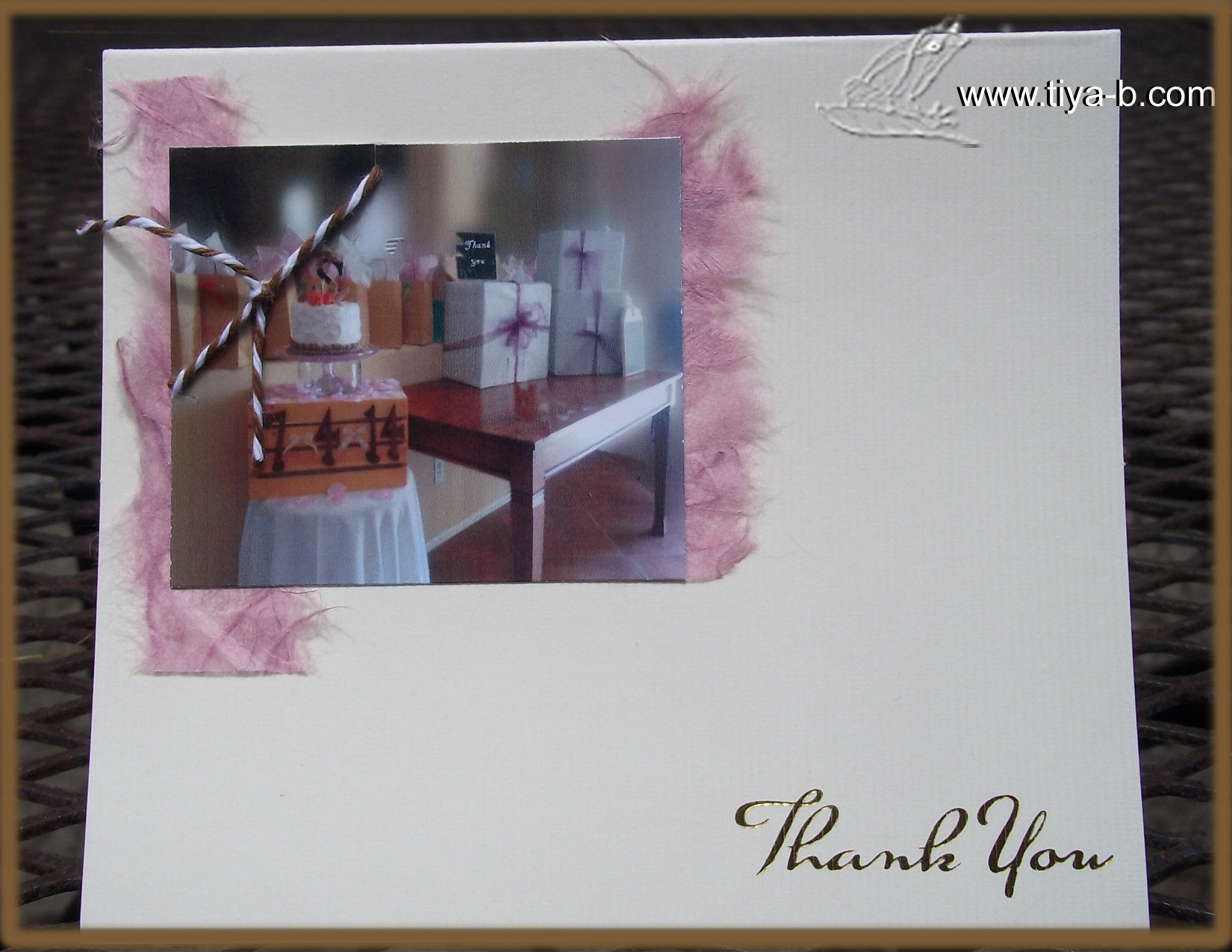 Just finished 20 cards for thankyou for a weddingim attending tomorrow.. took the picture at the shower. Her shower theme was shabby chic , so I made two cards the top one cuttlebug embossed on kraft and the bottom one with an imbossed gold thanks…. so he has a choice.