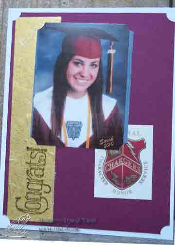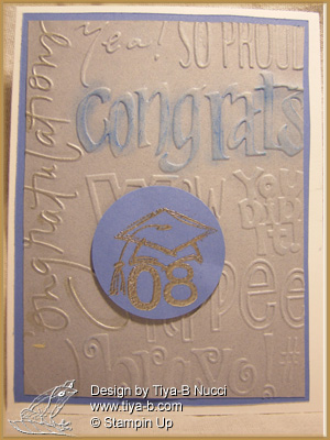 I chalked the congrats and silvered the congratulations with silver ink. The cap and o8 are cutout and attached with tape to raise it.